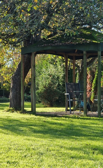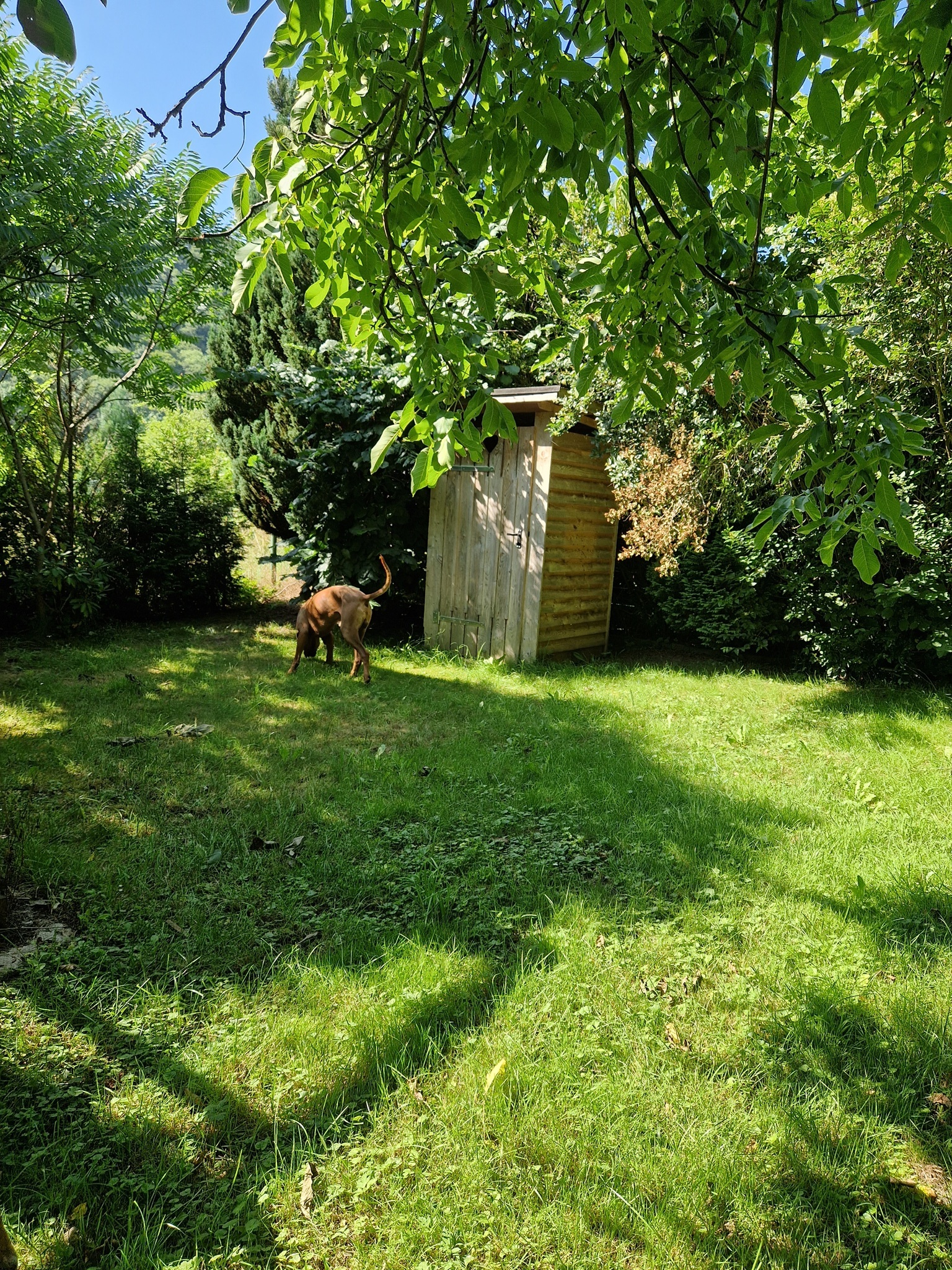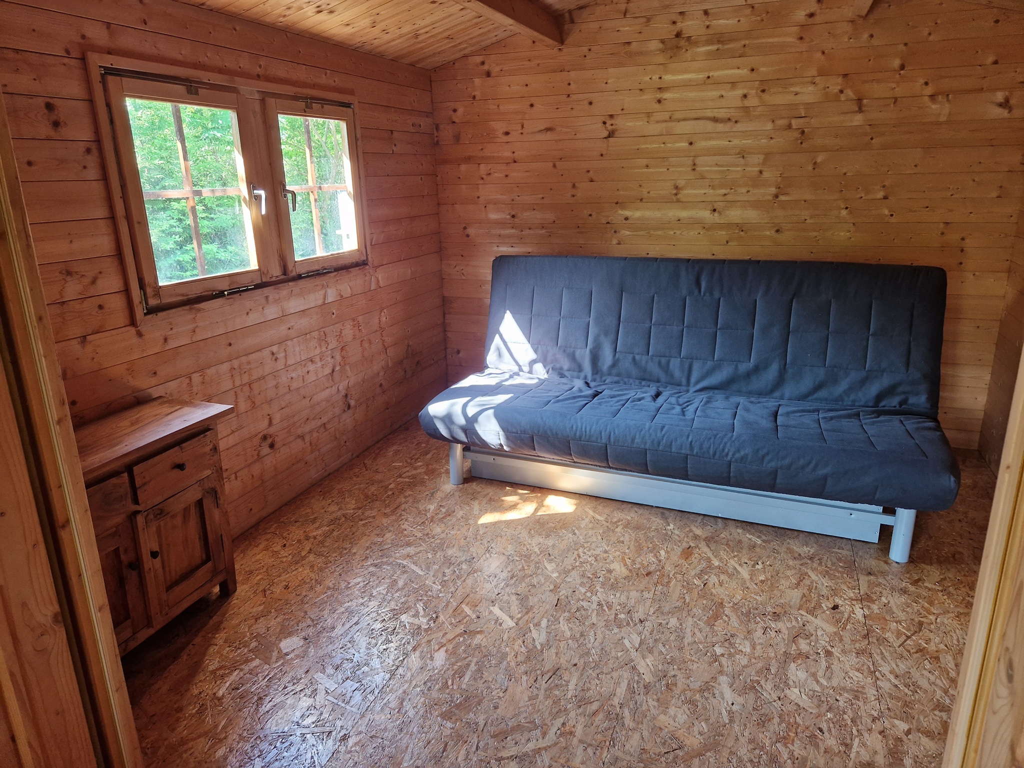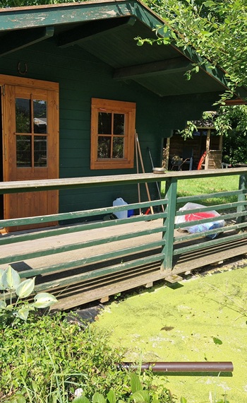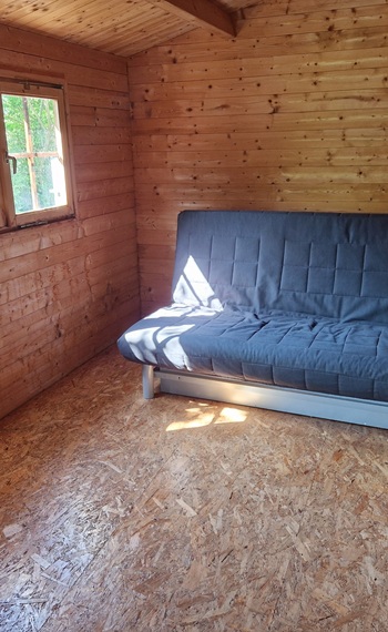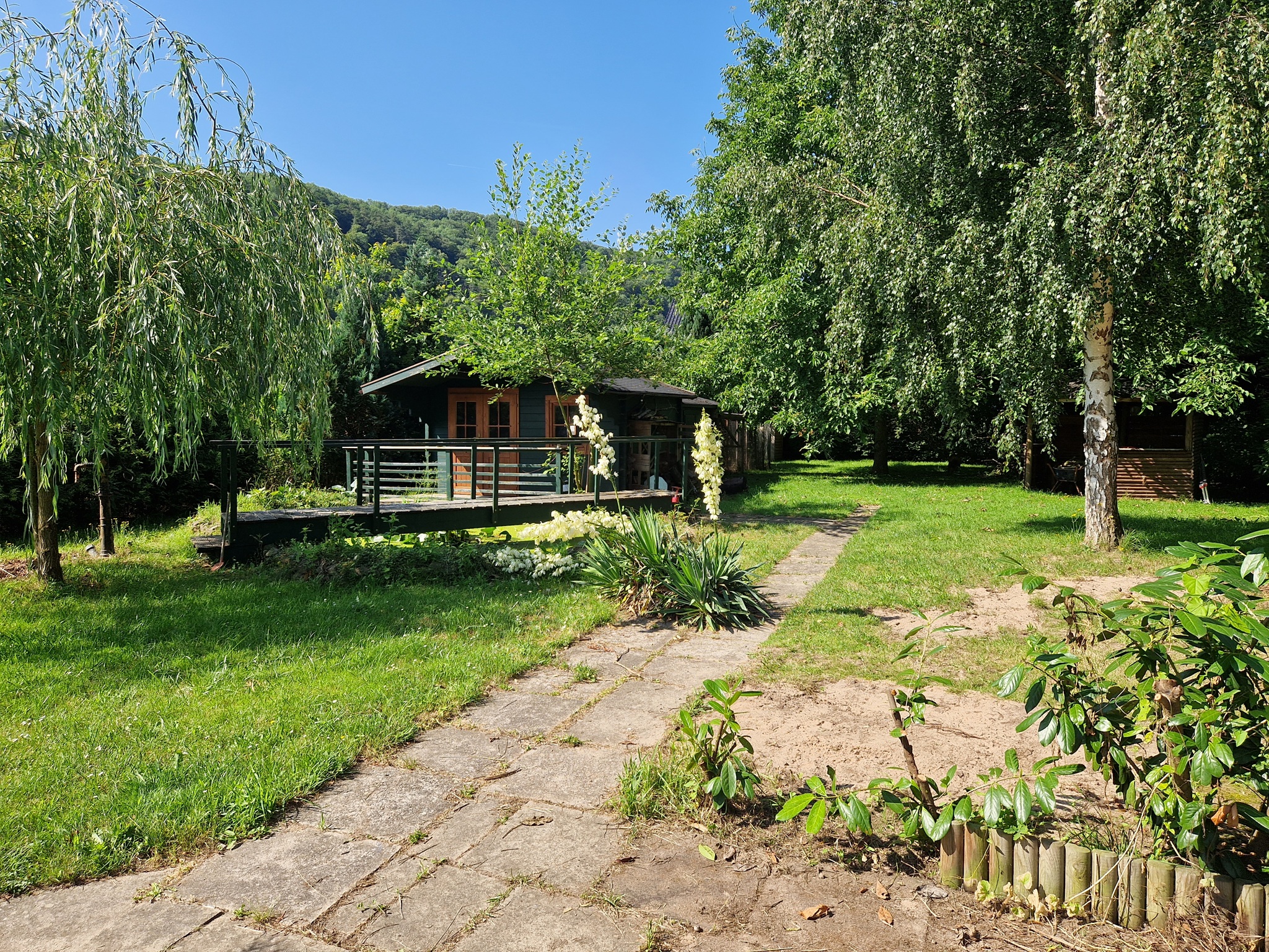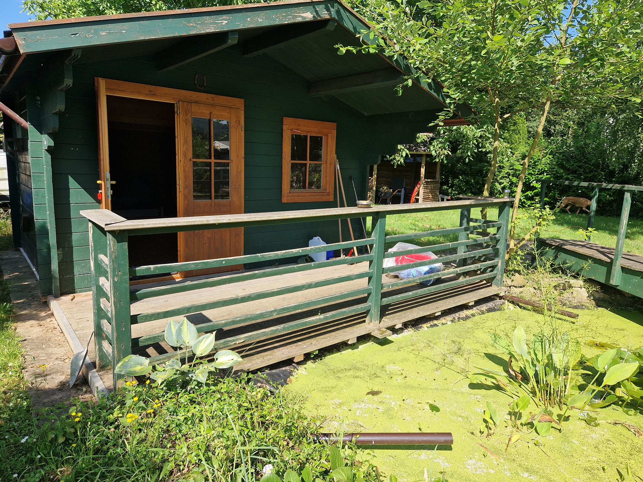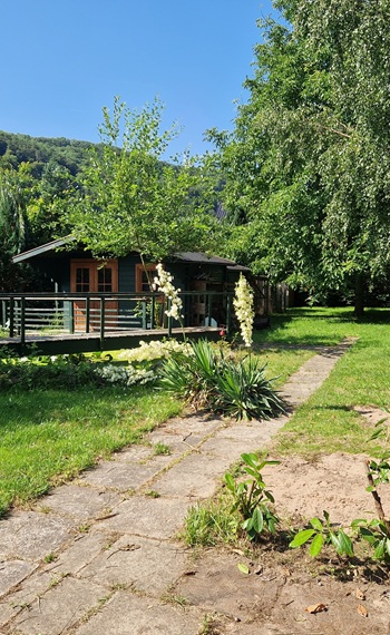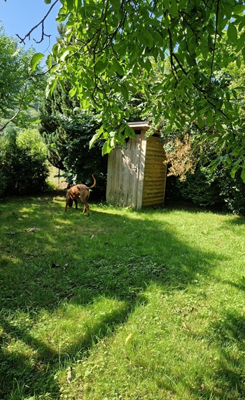 Ein kleines BonBon: Für die Zeit des Trainings können Sie die gemütliche Blockhütte bewohnen. Das 1.500 qm große Grundstück liegt am Rande des Ortes, ist eingezäunt und durch Hecken und Büsche überwiegend blickgeschützt.